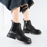 بوت و نیم بوت زنانه و دخترانه مدل بندی بغل زیپ رنگ مشکی کد A580
