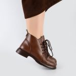بوت و نیم بوت زنانه و دخترانه مدل بندی بغل زیپ نیم ساق رنگ قهوه ای کد A503