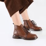 بوت و نیم بوت زنانه و دخترانه مدل بندی بغل زیپ نیم ساق رنگ قهوه ای