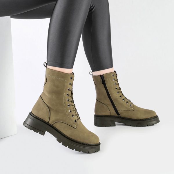 بوت و نیم بوت زنانه و دخترانه مدل بندی بغل زیپ برشکا BERESHKA رنگ یشمی کد A510