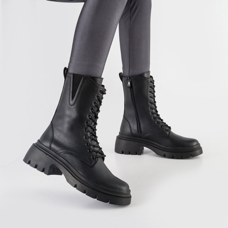 بوت و نیم بوت زنانه و دخترانه مدل بندی بغل زیپ برشکا BERESHKA رنگ مشکی