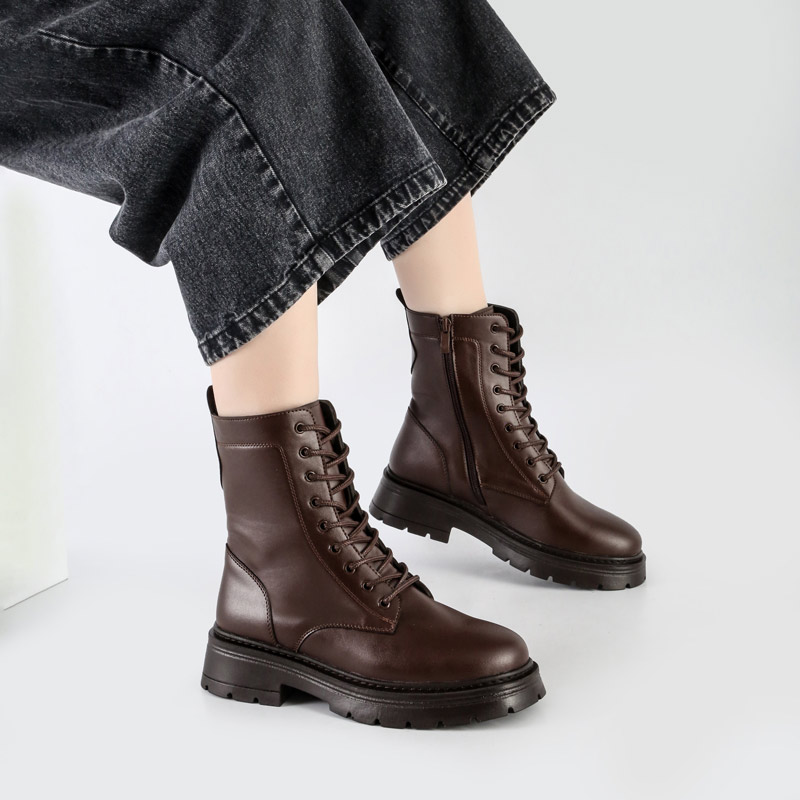 بوت و نیم بوت زنانه و دخترانه مدل بندی بغل زیپ رنگ قهوه ای