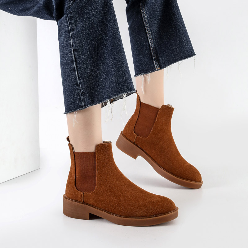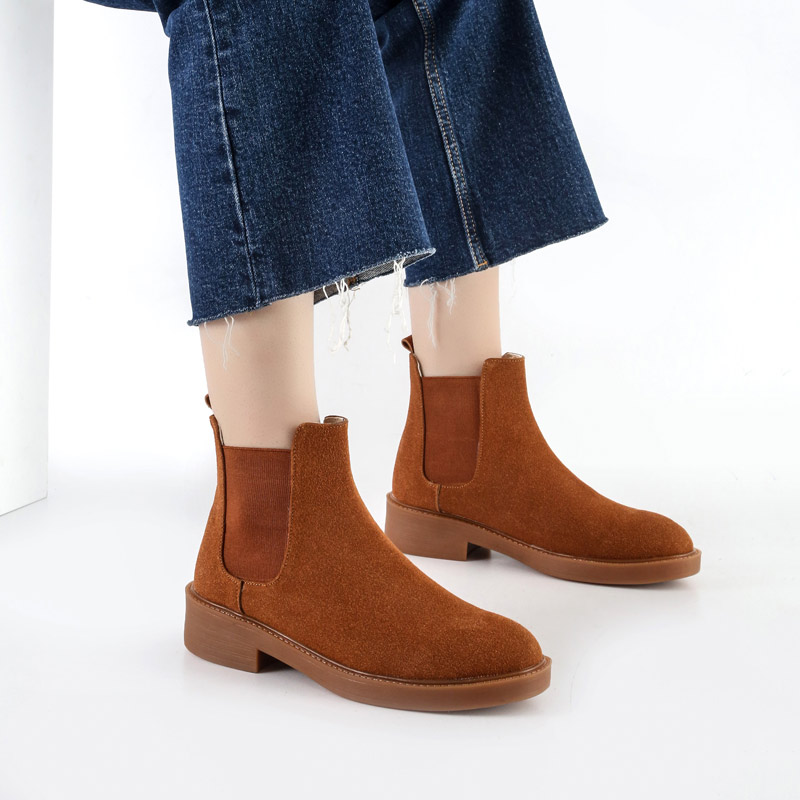 بوت و نیم بوت زنانه و دخترانه مدل چلسی دو بر کش رنگ آجری