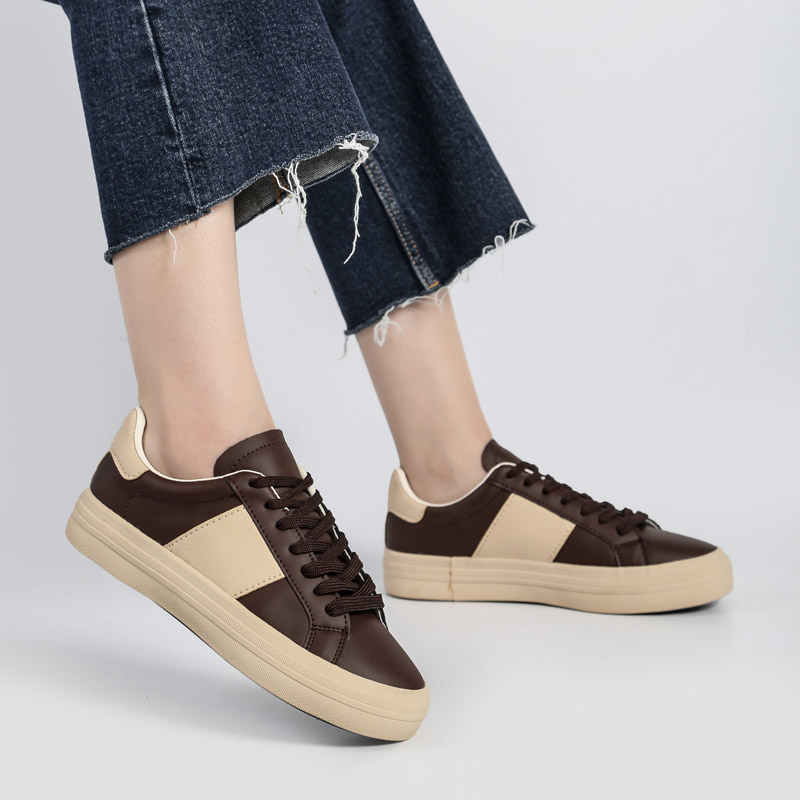 کفش اسپرت و راحتی زنانه و دخترانه رنگ قهوه ای کرم کد M796