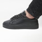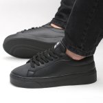 کفش ونس مردانه مدل ساده رنگ مشکی دور دوخت و رویه چرم کد 4232