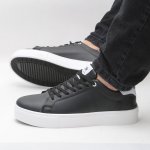 کفش ونس مردانه مدل ساده رنگ مشکی دور دوخت و رویه چرم کد 4232