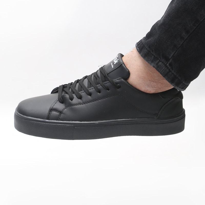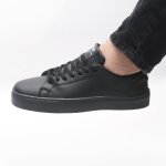 کفش ونس مردانه مدل ساده رنگ مشکی دور دوخت و رویه چرم کد 4232