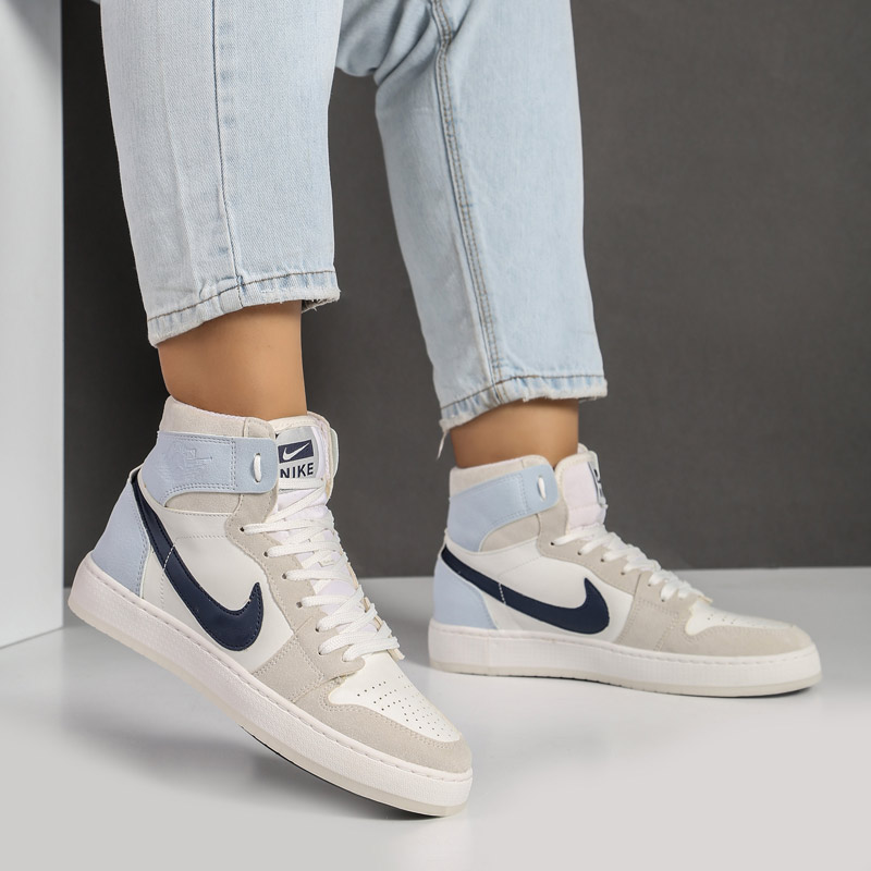 کفش و کتانی زنانه و دخترانه رنگ سفید آبی مدل نایک NIKE Jordan 1 ساقدار کد M754