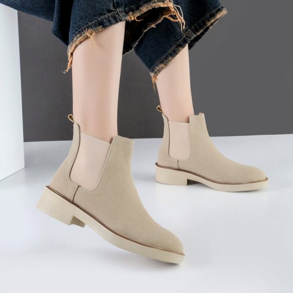 بوت و نیم بوت زنانه و دخترانه مدل چلسی دو بر کش رنگ خاکی کد M605